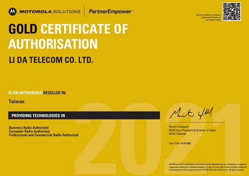 2022年 摩托羅拉 授權台灣地區GOLD黃金級銷售商