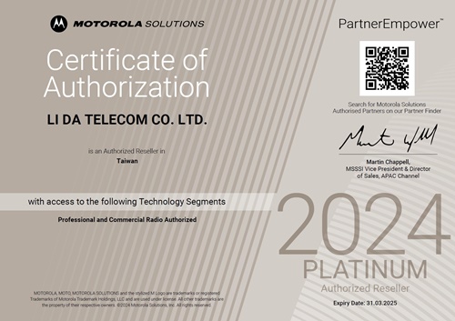 2024年 摩托羅拉 授權台灣地區PLATINUM白金級銷售商
